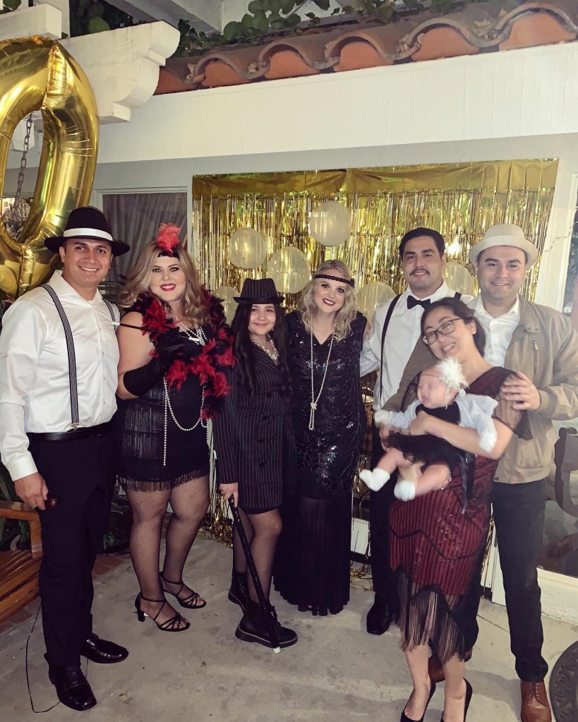 For my 30th birthday, I threw a 20’s Gatsby themed party. All of my guests came dressed in their best 20’s garb and ready to celebrate. I purchased my dress on Facebook Marketplace. However, my accessories and my family’s costumes were purchased on Amazon.