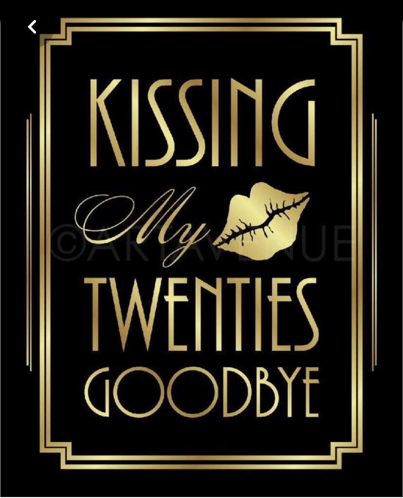 When guests walked in, they saw a kissing my 20’s Goodbye sign in a 11×14 gold frame. Also, I had a champagne bottle balloon, a champagne glass balloon, and some regular black, gold, and clear balloons. I purchased the sign on Etsy and printed it at Staples. The frame (https://amzn.to/2Oc0G84) and balloons (https://amzn.to/3bPpzyP, https://amzn.to/2NE0m2p) were bought on Amazon. The pictures below were my inspiration from Pinterest. However, I did not get a picture of my actual entry display.