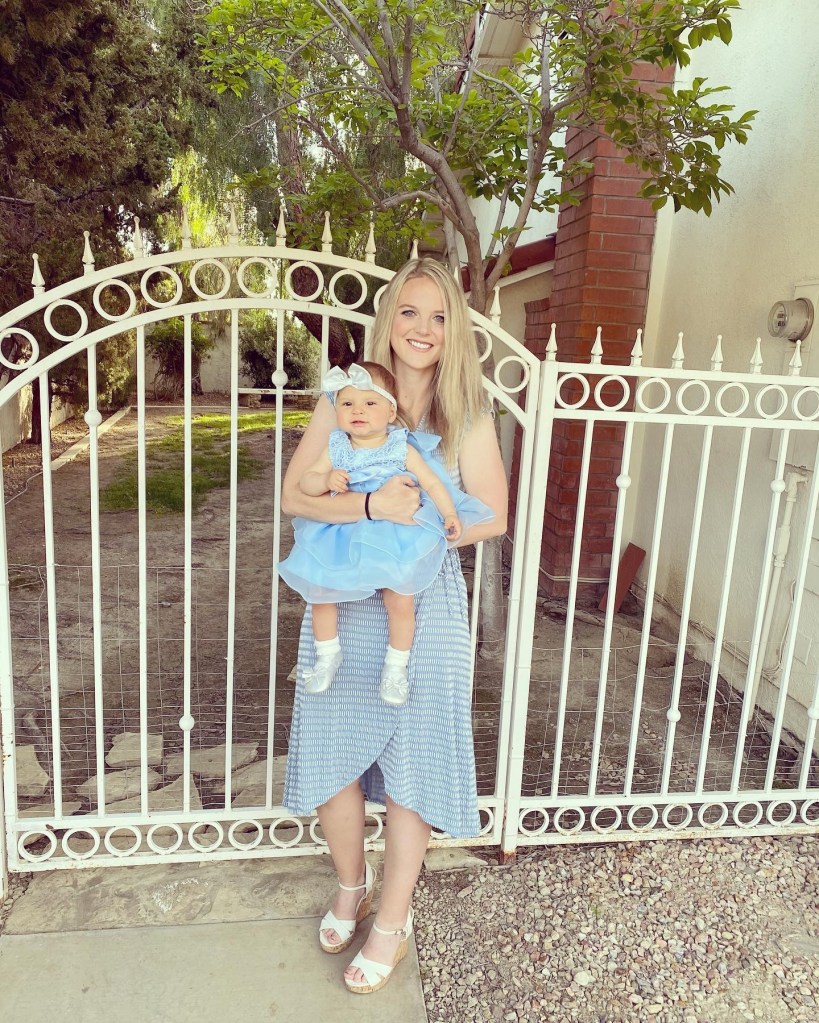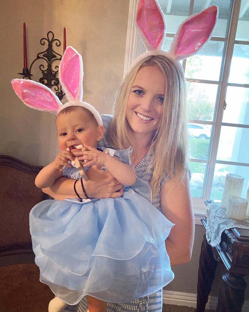 Then, we had to drive an hour to my parents house in Orange County. Once we were at my parent’s house, we started getting ready to celebrate Easter. I had dropped off our Easter outfits before our trip so that we could change into our Easter best once we arrived. Next, Quincy did an Easter egg hunt, and got an Easter basket from her grandma and great grandma. Finally, we ate dinner together and enjoyed talking about our trip to Orlando.