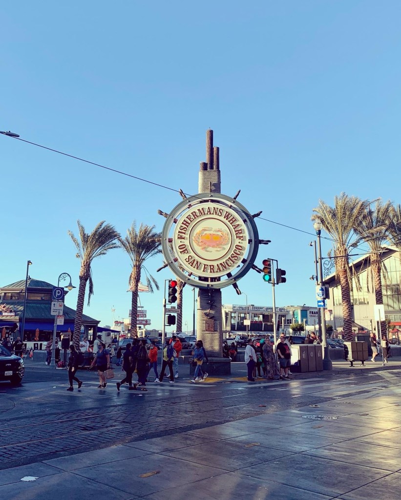 Once we finished our clam chowder, we chose to walk to fisherman’s wharf and see the shops. We needed to walk off our meal and drinks, and this was the perfect sightseeing walk. You can see Alkatraz Island as you walk, shop, and see where all the fresh fish are sold.