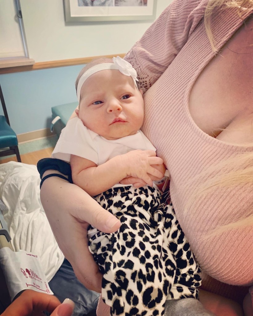 Quincy Leia was born at 6:04 AM on Saturday, July 11th, 2020. She weighed 6 lbs 11 ounces and was 20.5 inches long. My husband and I chose the name Quincy because it was cute and unique. I had coached a girl named Quincy in the past, and I liked her name, so I told my husband, and he liked it too. Her middle name is Leia because we wanted a Princess name, and we like how Leia flowed. Because Quincy was born prematurely (3.5 weeks), they were nervous of complications and took her away for awhile. I anxiously waited to have her returned. When they finally brought her back, I couldn’t believe I was carrying her for 9 months, gave birth to her, and how beautiful she was.