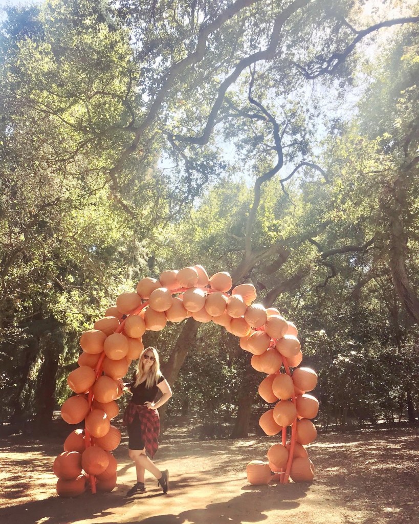 In the spring time, this garden has tulips and cherry blossoms, but I loved coming in the fall, seeing the pumpkins, and walking through the woods. The principal collections in the Descanso Gardens includes: an Oak Forest, a Camellia Collection, an Ancient Forrest, a California Natives section, an Oak Woodland, a rose garden, a Japanese Garden, and a beautiful lake. While walking around all the Gardens, my mom and I walked 3+ miles, so it is a great way to get your daily steps in.