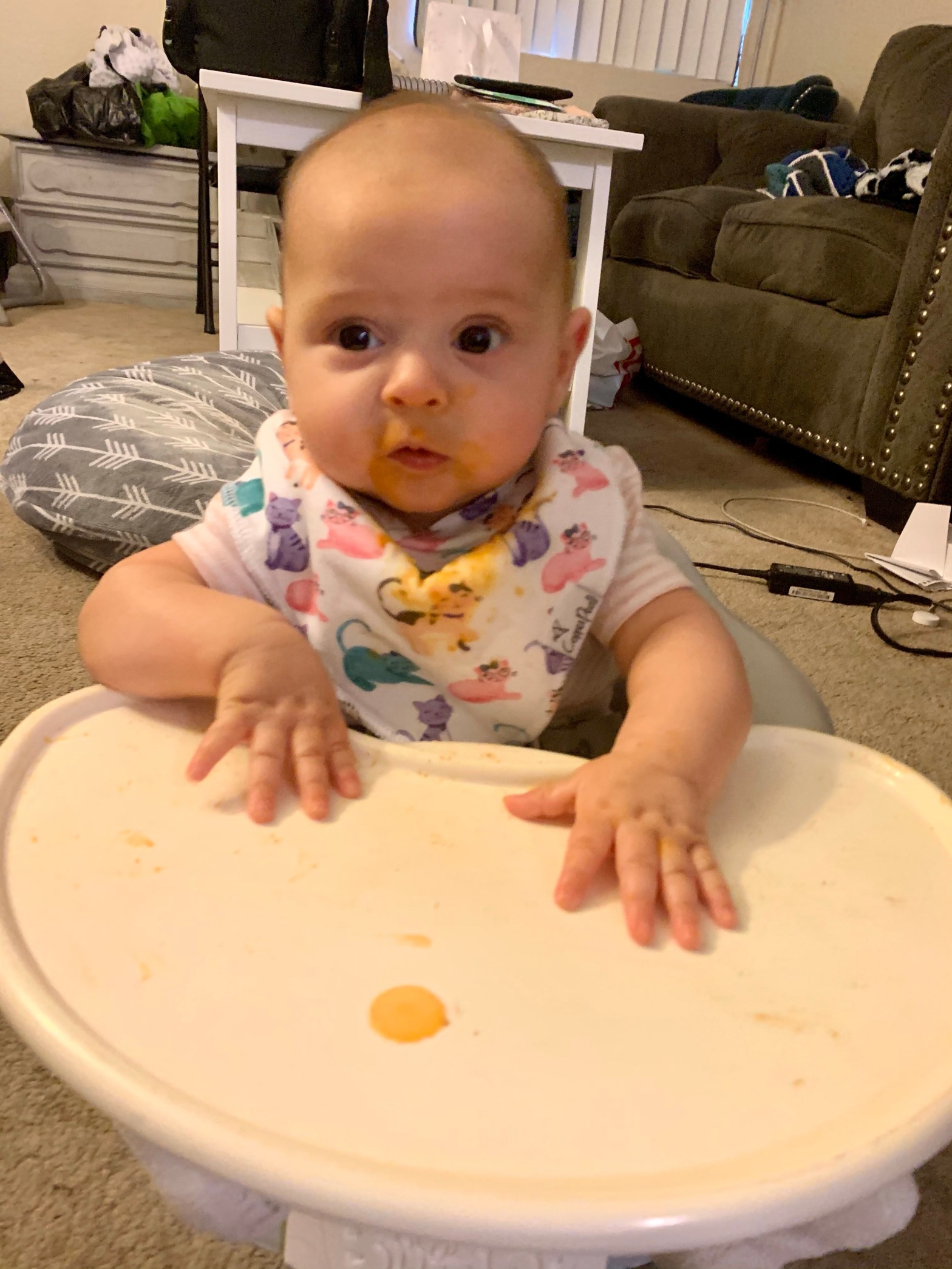 December 11, 2020 This photo was the aftermath of our first baby food adventure. I chose to give her sweet potato as her first baby food because I wanted to do a veggie I thought she might like. She liked it, but you can see the aftermath on her face. We hadn’t quite mastered foodContinue reading “First Time Eating Solids”